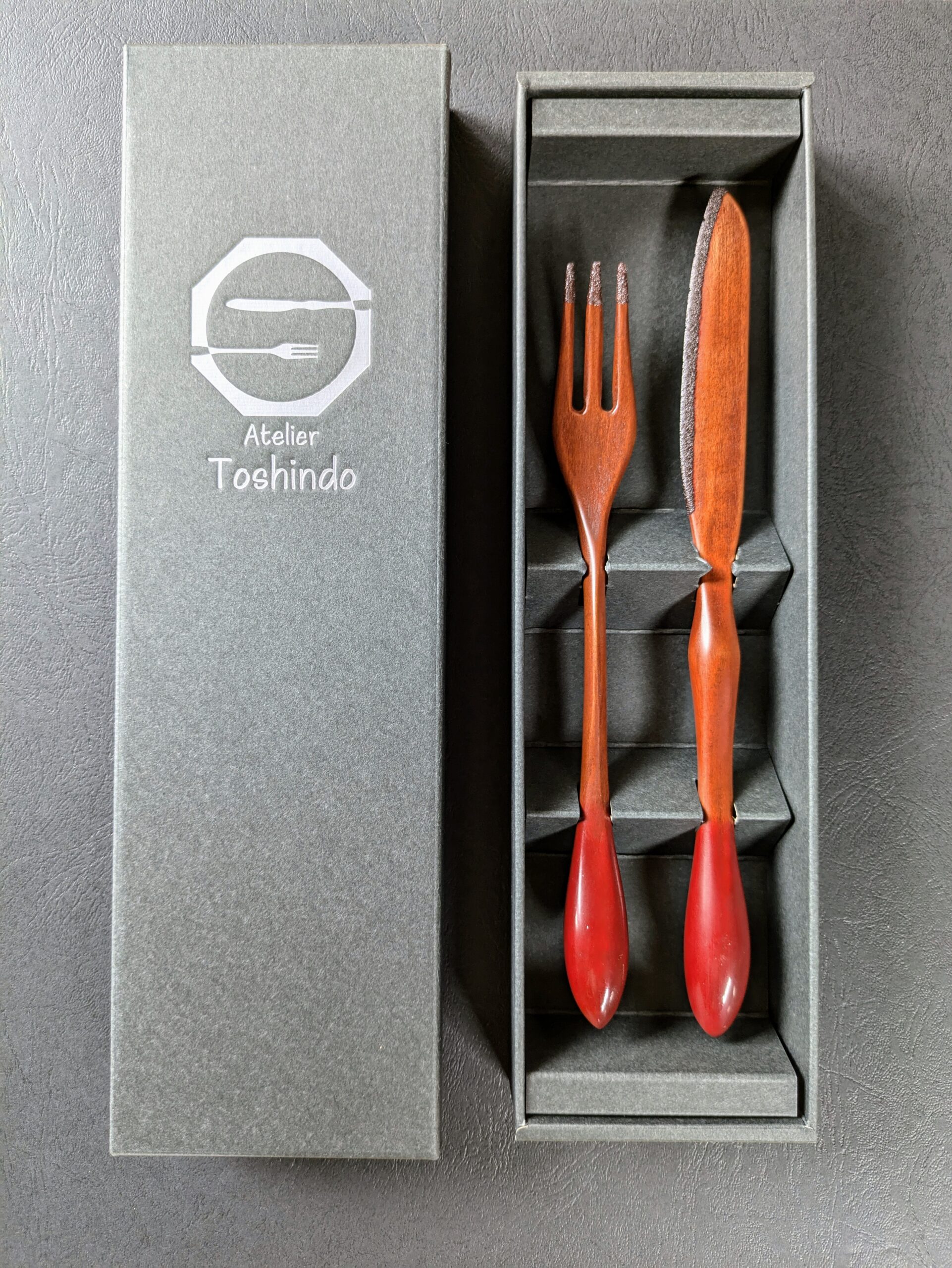 | 商品・サービス内容 | 赤漆で仕上げた、サクラの木のカトラリーセットです。 手にしっくりと収まるようにデザインしました。 先端に漆の粉を塗布することで、耐久性を高めています。 ※木製品のため、木目による色味に個体差があります。 |